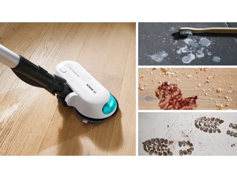 - Aktiv pletfjernelse: Power Spinning Pads og automatisk vanddosering sikrer grundig mopping.