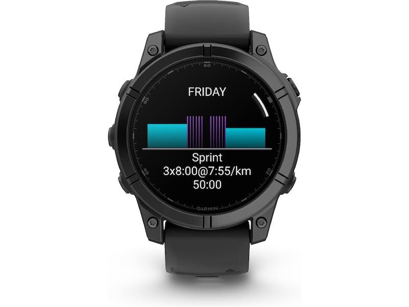 fēnix E tilbyder en lysstærk AMOLED-skærm, der gør detaljerede oplysninger og kortlægning let at læse med et øjeblik, mens den stadig giver en fantastisk batterilevetid - op til 16 dage i smartwatch-tilstand.