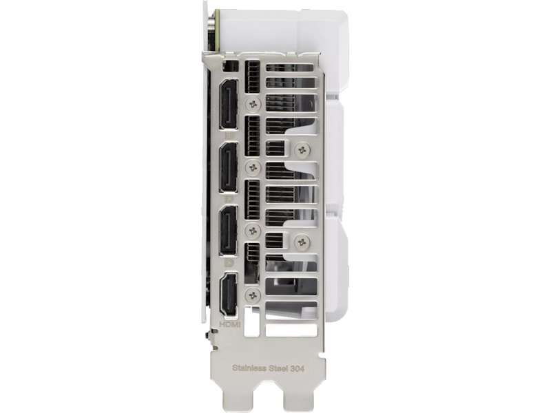 PCB'en er forstærket med en aluminiumsbagplade, der tilføjer strukturel stivhed, hjælper med at forhindre bøjning og beskytter komponenter og trace-pathways mod skader. Bagsiden har en bred åbning, der tillader varm luft at slippe ud i retning mod chassisets udstødningsventilatorer i stedet for at blive genbrugt tilbage i GPU-køleren.