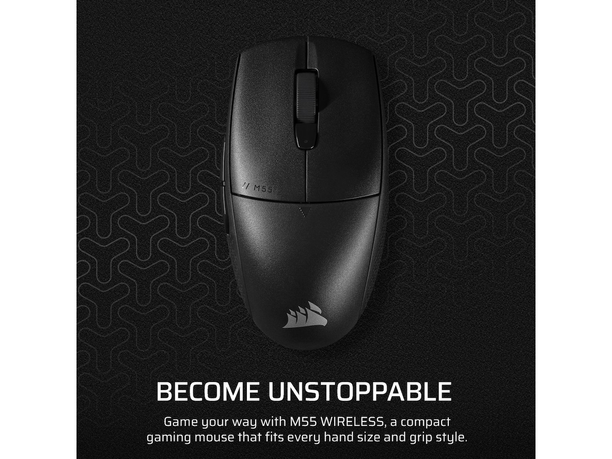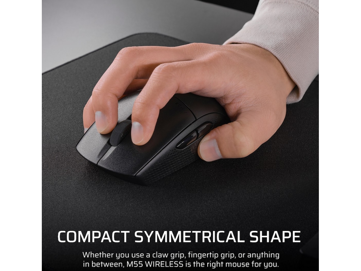 Bliv en virkelig ustoppelig kraft. CORSAIR M55 TRÅDLØS gamingmus har, hvad du skal bruge for at klikke, swipe og feje dig vej til sejr. Dens strømlinede symmetriske form passer til næsten enhver håndstørrelse og grebstil, hvilket gør den til en værdifuld genstand, som enhver spiller kan udstyre med selvtillid.