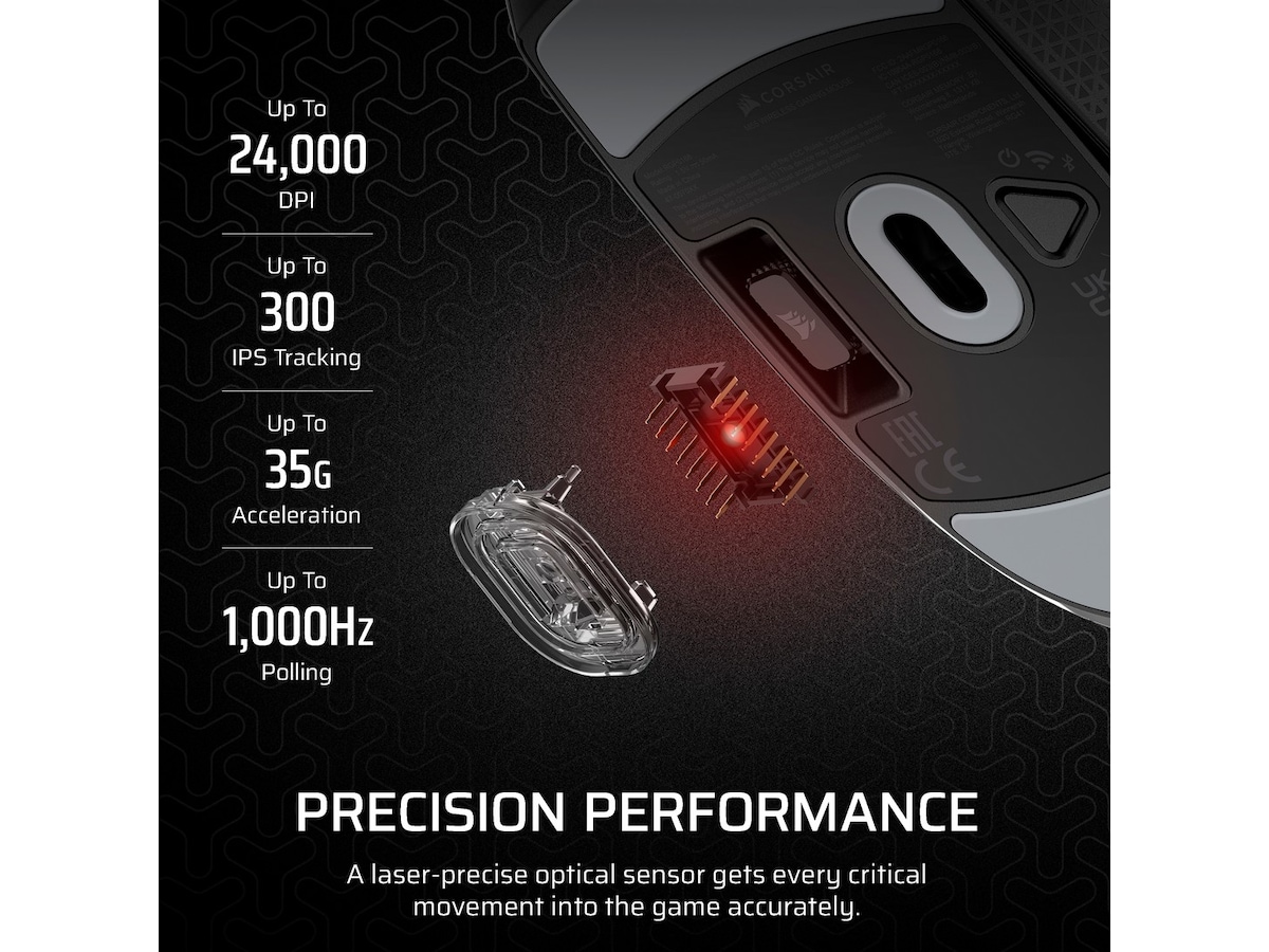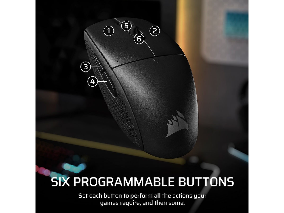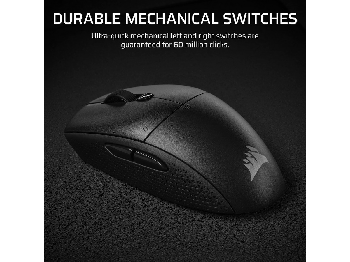 Med M55 TRÅDLØS er dine bevægelser og angreb altid inden for rækkevidde. En dedikeret DPI-knap lader dig hurtigt justere DPI, mens du er på farten, og holdbare venstre- og højrekliks mekaniske kontakter registrerer input hurtigt, garanteret for op til 60 millioner klik. I alt seks programmerbare knapper kan kortlægges i CORSAIR iCUE, hvor du også kan kalibrere din mus efter din smag ved at indstille DPI og aktivere sniper mode.