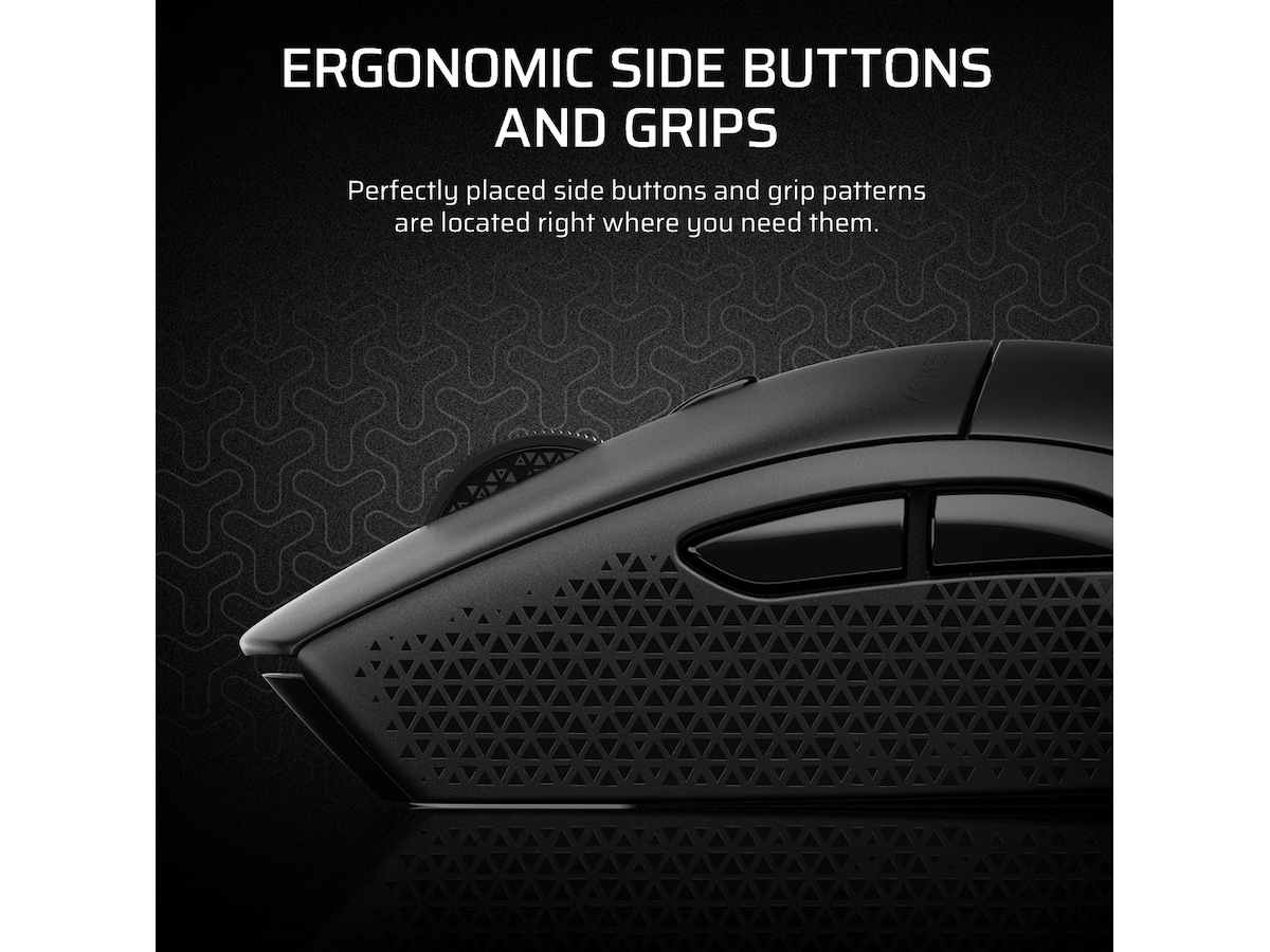 Den optiske sensor understøtter op til 24.000 DPI for nøjagtigt at spore enhver mikroskopisk bevægelse og sigte, justerbar på farten med en dedikeret DPI-knap. - Teksturerede sidegreb