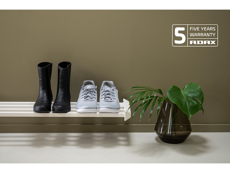 Giver hurtig og effektiv tørring af våde sko, vanter eller huer. Tørrestativet leveres i to længder og kan monteres på væggen eller placeres på gulvet.