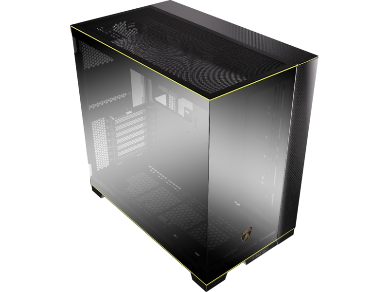 De tydelige detaljer i materialer og Giallo Orion-farveaccenter er sømløst integreret i hele kabinettet og udstråler en umiskendelig aura af luksus og ydeevne. Selv RGB-lysbåndene er forudindstillet med Giallo Orion Pantone-farven, hvilket forlænger den spændende oplevelse af Automobili Lamborghini. Denne omhyggeligt sammensatte kombination af materialer og belysning forbedrer ikke kun den æstetiske appel, men tilfører også projektet den konkurrenceånd, der er afgørende for de mest spændende eventyr.