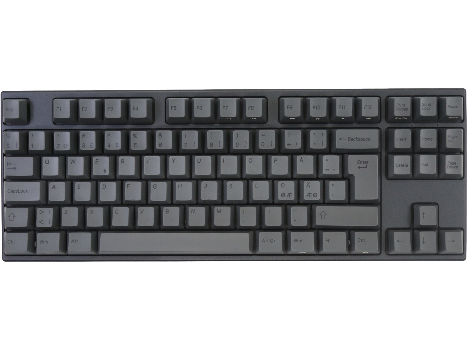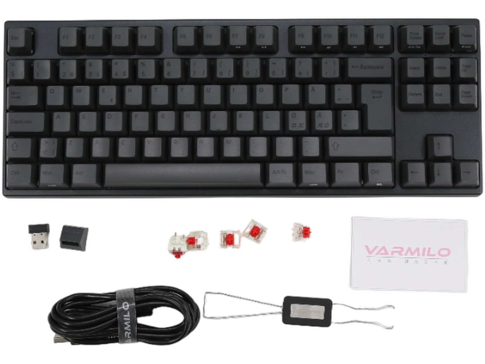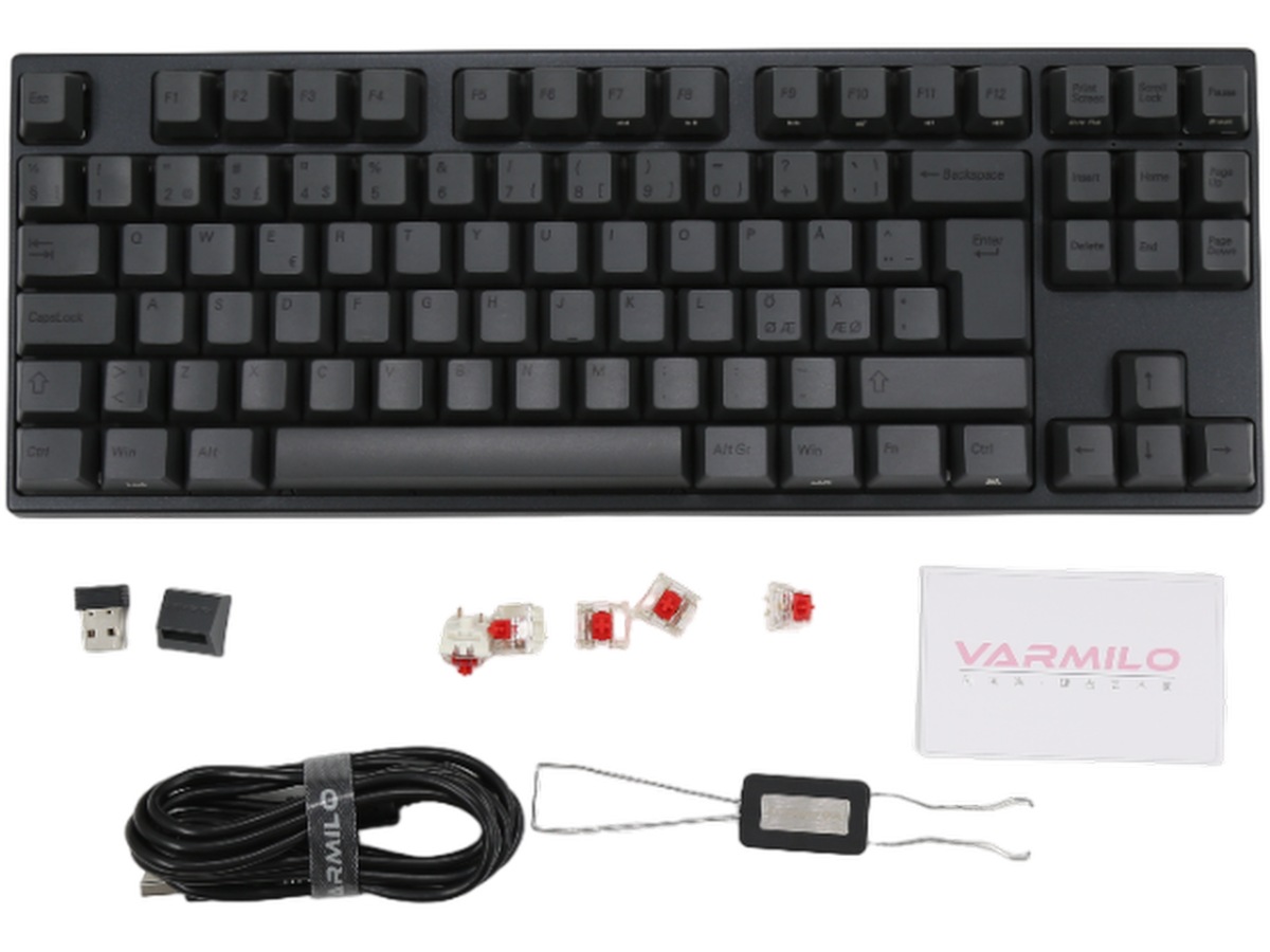 Billige keycaps holder ikke længe, og bogstaverne, der er trykt på dem, falmer over tid. Varmilos keycaps er lavet af PBT-plast, som er slidstærkt. Bogstaverne på keycaps er lavet af forskellige typer plast og er støbt direkte på tasterne. Derfor falmer de aldrig.