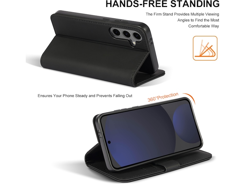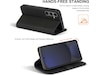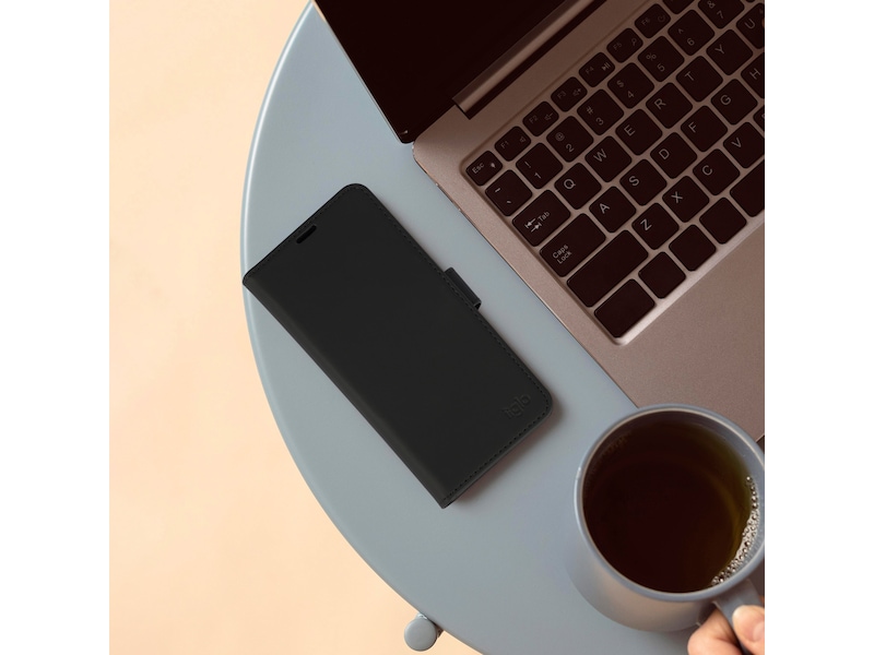 Etuiet er meget let og giver god holdekomfort, når du bruger din smartphone. Fronten kan foldes til et stativ, så du kan se film eller deltage i videomøder i en perfekt vinkel! Etuiet har en lomme til tre kort. Selv med praktiske løsninger er der ikke gået på kompromis med designet, som er sort, enkelt og stilfuldt.