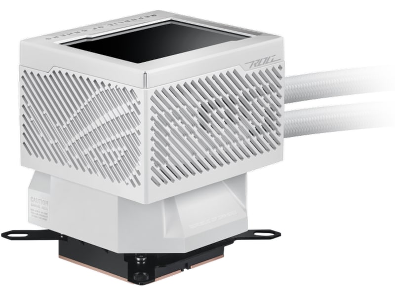 Go cooler than cool with the Ryujin III White Edition. Its pristine frame houses an expansive 3.5-inch LCD screen that displays live system stats, animated GIFs, or even your own custom artwork. Underneath, a new 8th Gen Asetek pump quietly keeps the latest processors from Intel and AMD cool, while an embedded Axial-tech fan helps control motherboard VRM temps. And the coolant within flows through 400mm of reinforced tubing and a higher capacity radiator chilled by two magnetic ROG 120 mm ARGB fans, making installation and customization a snap
