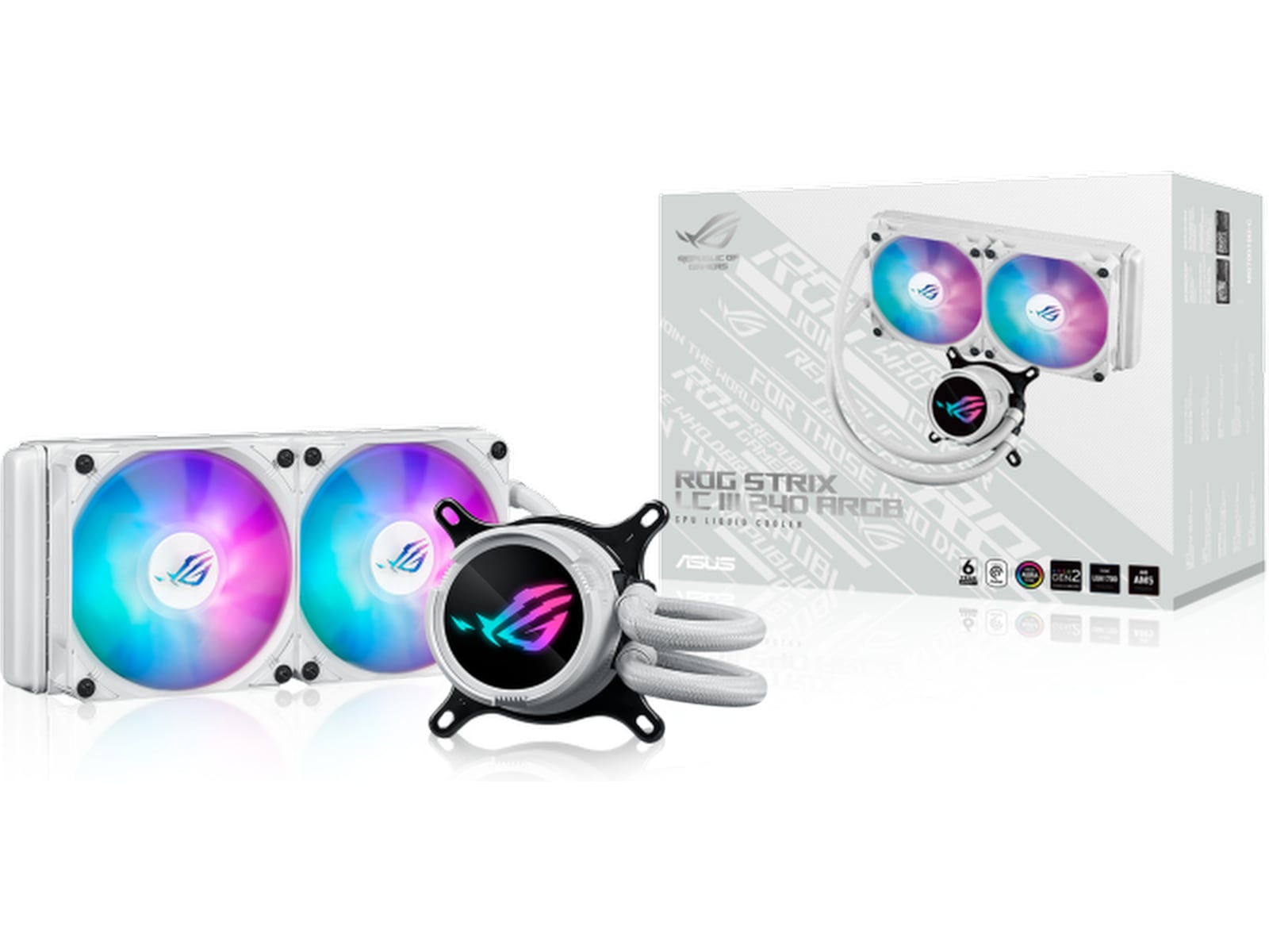 Opnå optimal ydeevne og forbløffende æstetik med ROG Strix LC III 240 ARGB, der byder på den seneste generation af Aseteks nye Gen7 v2 pumpe og ROG ARGB radiatorventilatorer. Håndter ubesværet den varme, der genereres af AMD Ryzen™- og Intel® Core™-processorer, for at frigøre ubegrænset kraft. Nyd forbedret installationsfleksibilitet med en 360° roterbar vandblok, der rummer forskellige monteringsmuligheder. Udforsk et spektrum af Aura-lystilstande for at øge den visuelle tiltrækning af din gaming-bygning. Og omfavn den perfekte blanding af effektivitet og udsøgt design for en oplevelse uden sidestykke.