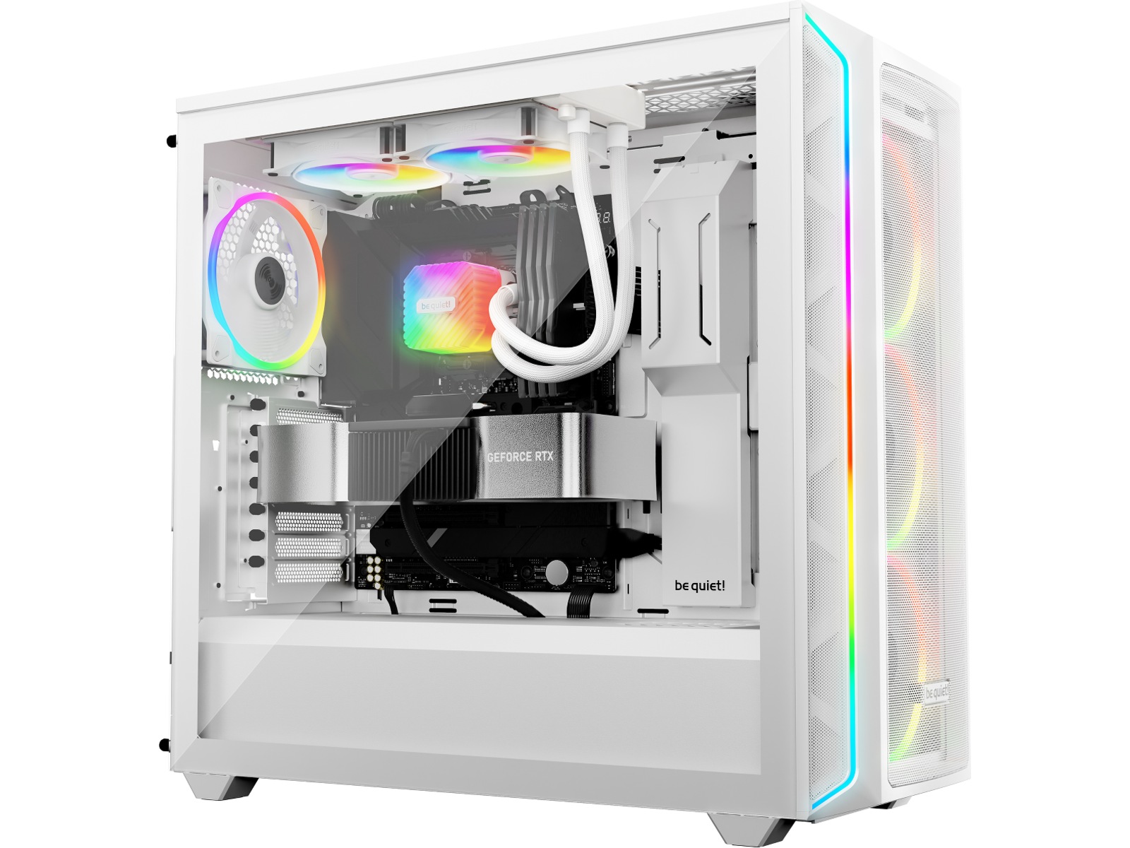 Light Loop 240 mm har 2 Light Wings LX 120 mm PWM højhastighedsblæsere. De kommer med 16 LED'er, der spreder sig perfekt over blæserbladene og er nøglen til de fantastiske visuelle effekter, Light Loop 240 mm tilbyder. Blæserens 9 luftstrømsoptimerede blæserblade reducerer ikke kun støjgenererende turbulenser, men sikrer også, at Light Wings LX 120 mm PWM high-speed giver den ydeevne, der er behov for, selv i krævende scenarier.