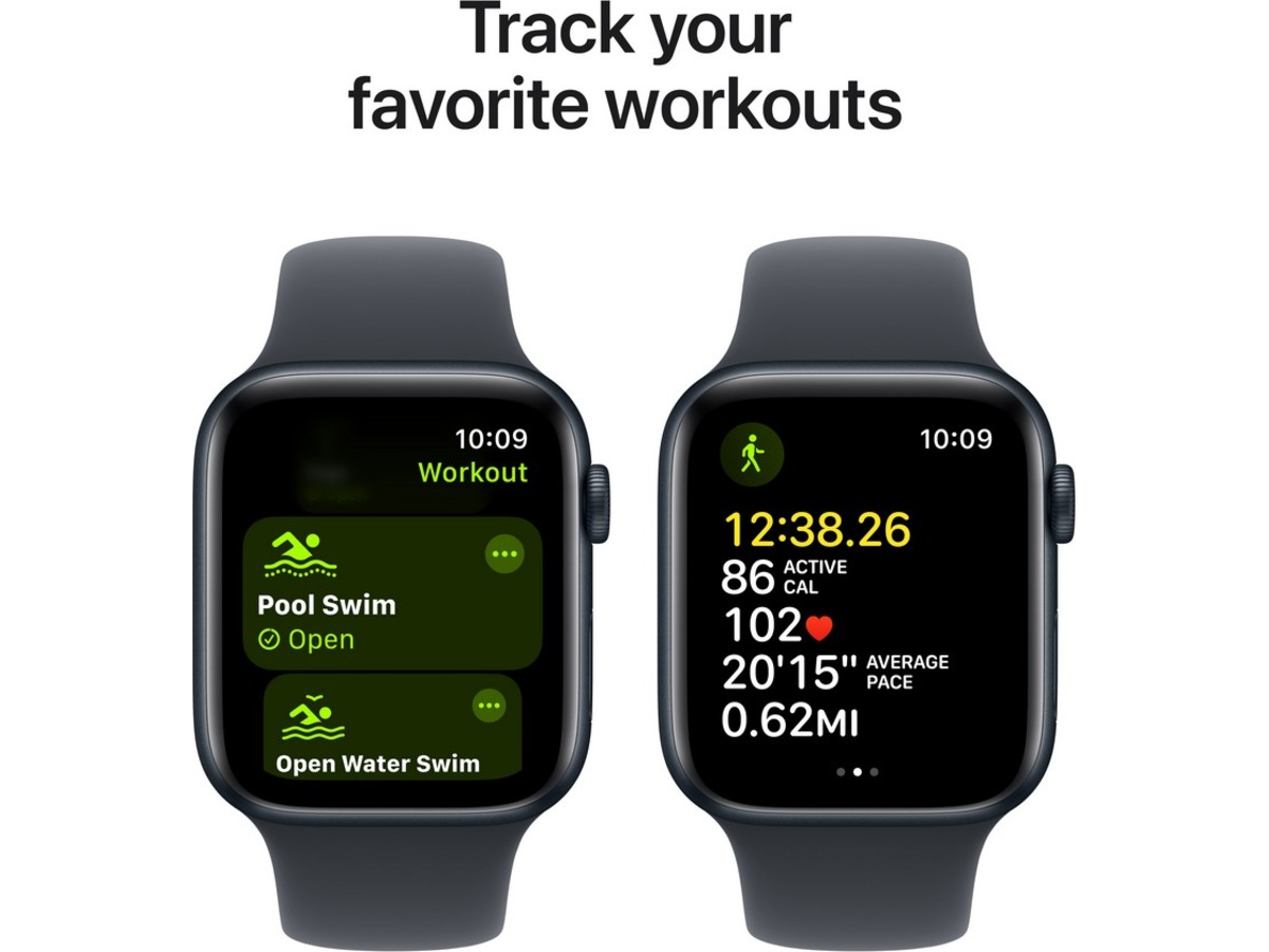 Alt det vigtigste for at holde dig motiveret og aktiv, holde kontakten med andre, give dig overblik over dit helbred og være tryg. Smart stak og nydesignede apps i watchOS 10 giver dig flere oplysninger på et øjeblik. Med funktioner som ulykkesregistrering og bedre konditionsmålinger giver Apple Watch SE mere værdi for pengene.