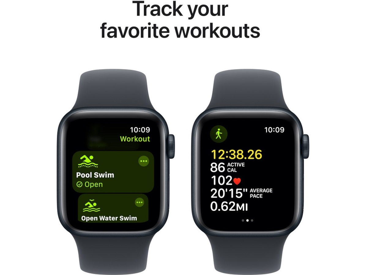 Alt det vigtigste for at holde dig motiveret og aktiv, holde kontakten med andre, give dig overblik over dit helbred og være tryg. Smart stak og nydesignede apps i watchOS 10 giver dig flere oplysninger på et øjeblik. Med funktioner som ulykkesregistrering og bedre konditionsmålinger giver Apple Watch SE mere værdi for pengene.
