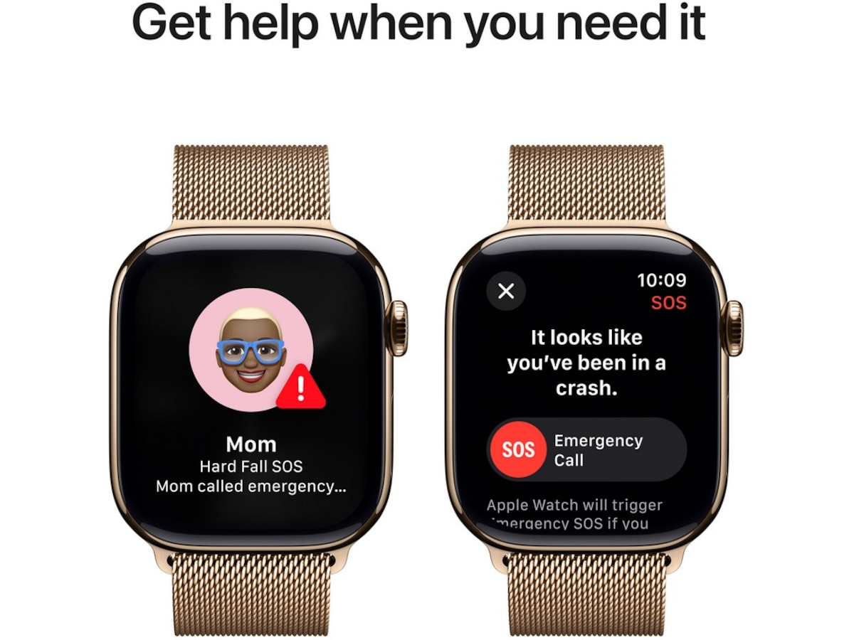 Funktioner Medicineringspåmindelse, Emergency SOS, Hurtig opladning, Crash Detection, Støjovervågning, International Emergency Calling, Fald-detektion, Lysstyrke: 2000 nits, Family Setup support