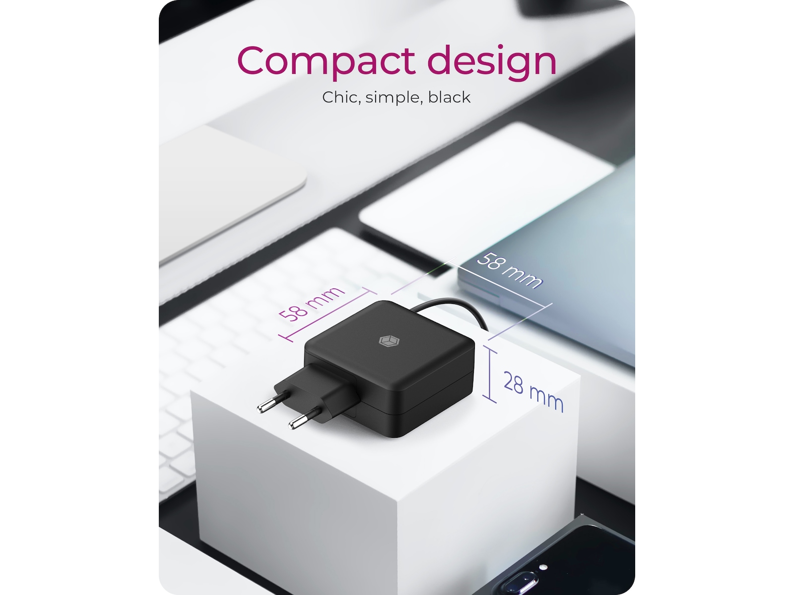 - USB-C: I en verden, hvor USB-C er den nye opladningsstandard, og traditionelle strømforsyninger med hule stik er blevet en sjældenhed, tilbyder den kompakte strømforsyning den ideelle løsning til mange enheder