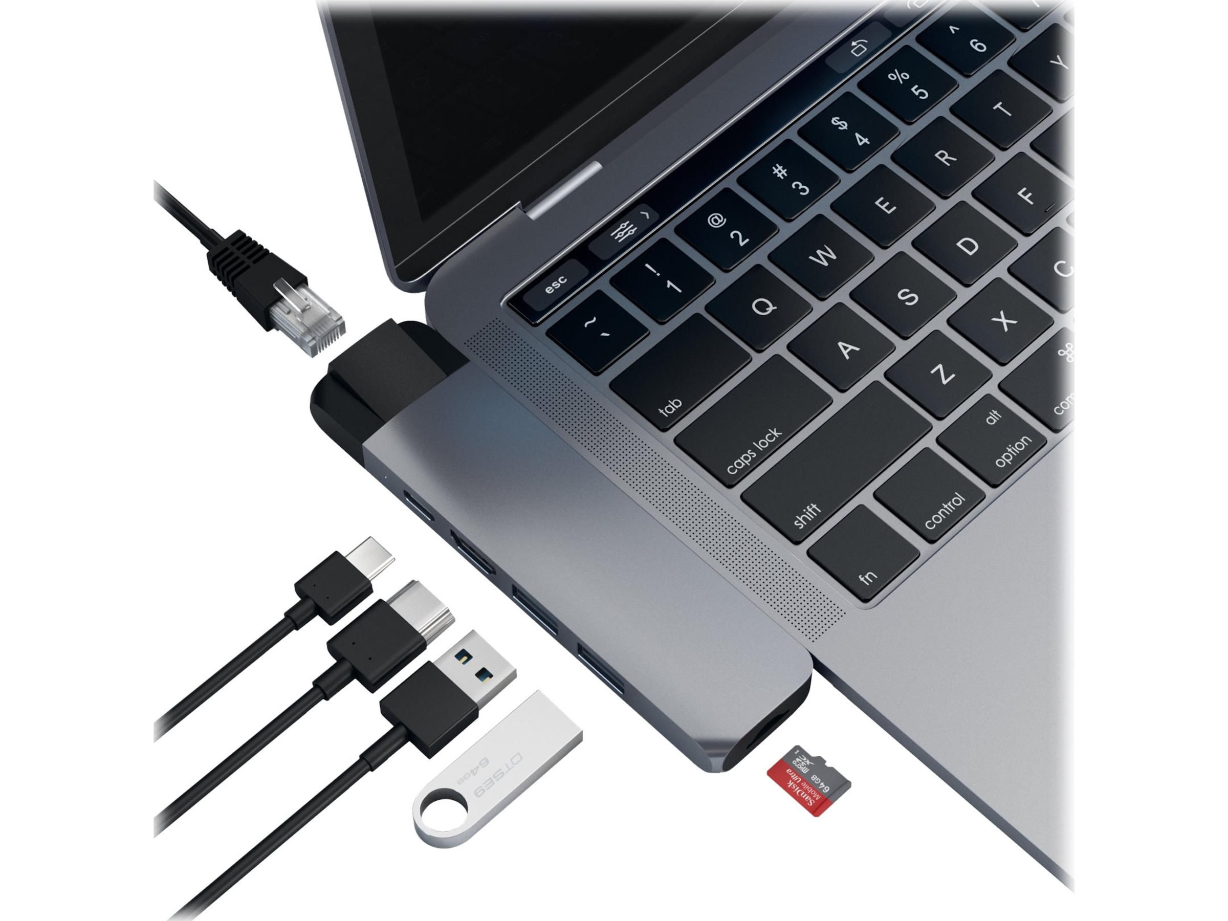 Ideel til USB C MacBook Pro brugere, Satechi Type-C Pro Hub Adapter med Ethernet tilføjer et væld af udvidelsesporte til din bærbare computer. Med en Gigabit Ethernet port, USB-C PD opladning, USB-A dataporter og en micro SD kortlæser for at opfylde alle dine datatransfer behov. Dobbelt skærm understøttes ikke på Apple M1 Macs.