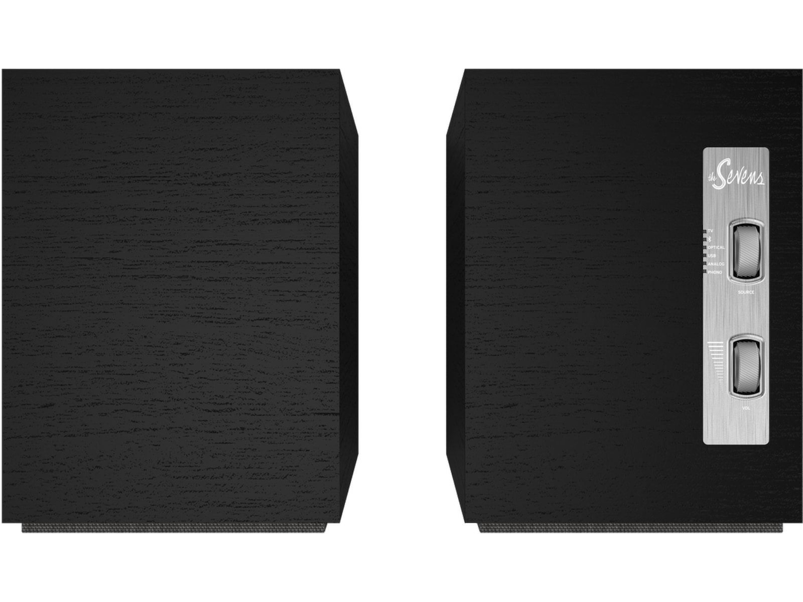 Sevens tilbyder en sømløs Bluetooth® trådløs forbindelse, digital optisk, 3,5 mm analog, RCA/Phono-indgange og en subwoofer-udgang. Venstre/højre højttalerskift giver mulighed for nem placering i dit rum.