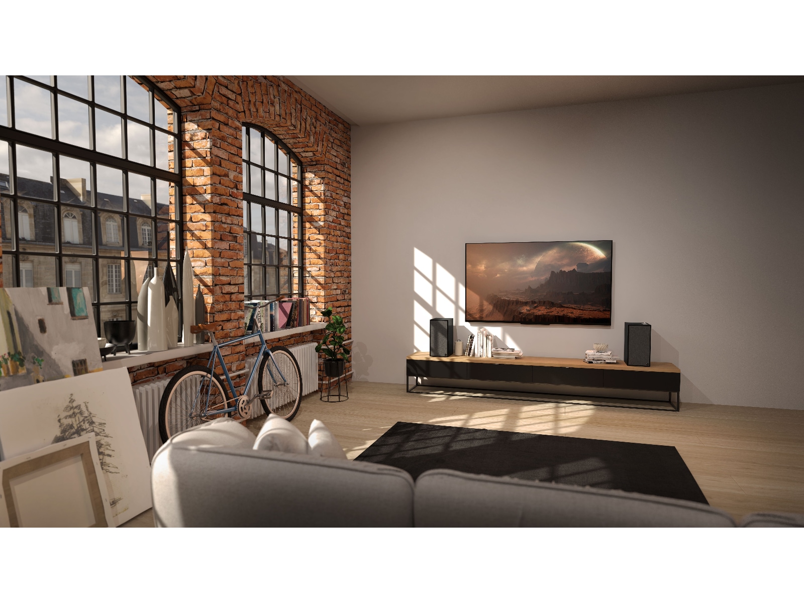 Plug-and-play, ingen AV-receiver nødvendig. Få fordybende, rumfyldende lyd fra dit tv med kun ét HDMI-kabel. Denne HDMI-ARC-forbindelse giver også din eksisterende TV-fjernbetjening mulighed for at styre højttalernes lydstyrke.