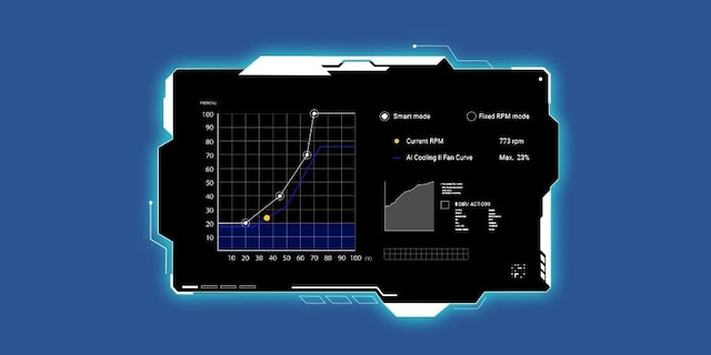 ASUS AI-løsninger inkluderer AI Advisor som din tekniske ekspert med ekspertise i pc-ydeevne og AI Cooling II til automatisk temperaturkontrol.