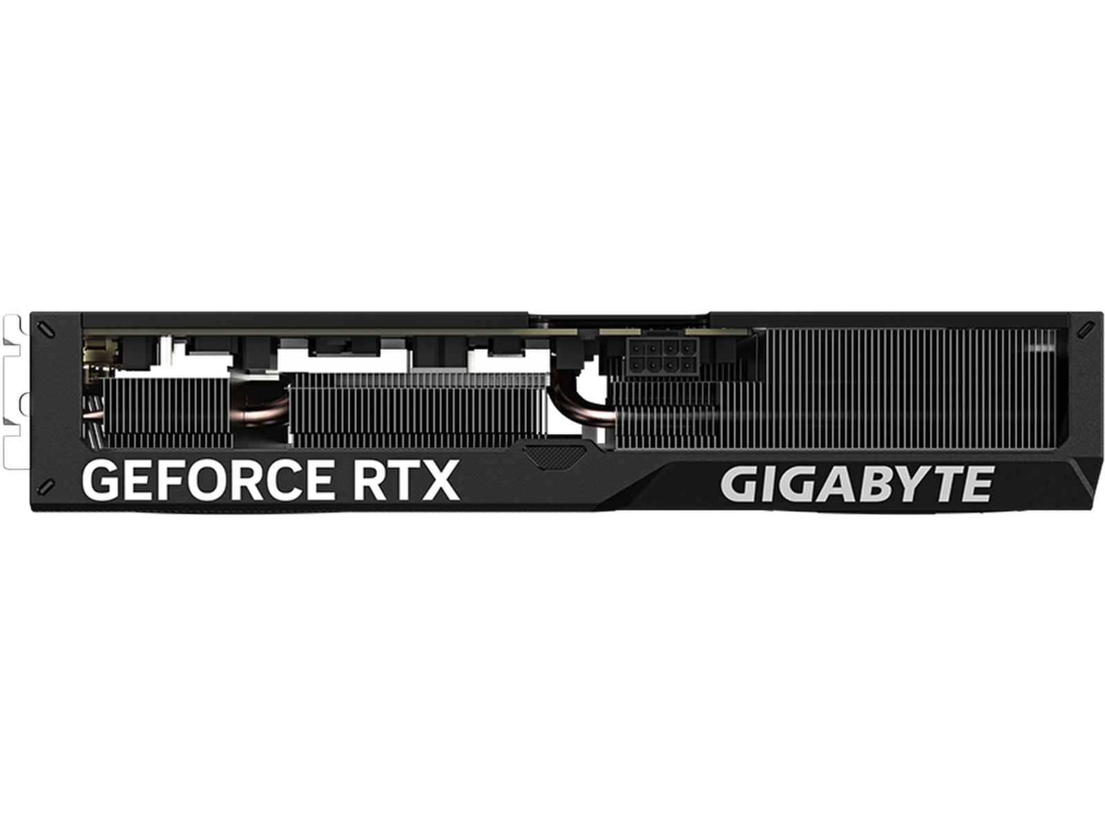 The shape of the copper heat pipe maximizes the direct contact area with the GPU. The heat pipe also covers the VRAM through a large metal plate contact to ensure proper cooling.