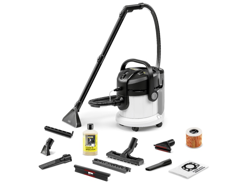 Dyb rengøring kombineret med ergonomisk design og multifunktionalitet: Med sit mobile design sikrer SE 4 tekstilrenser hygiejnisk rengøring helt ned til fibrene på de fleste typer tekstiloverflader. Den pålidelige sprayekstraktionsteknologi fra Kärcher giver de bedste resultater: friskt vand fra hanen og Kärcher Tepperenser RM 519 sprøjtes dybt ind i tekstilfibrene under tryk og suges derefter op sammen med snavset – ideelt for familier, allergikere og husholdninger med kæledyr. Enheden er et multifunktionelt 3-i-1-produkt, som også fungerer som en fuldgyldig støvsuger. Den store gennemsigtige 4-liters tank til rent vand er stødsikker og aftagelig, hvilket gør den nem at fylde og tømme. Det beskidte vand, der suges op, samles i tanken. Og 3-i-1-bærehåndtaget gør det nemt at bære, åbne, lukke og tømme tanken. Tilbehøret, der følger med, kan opbevares på selve enheden. Den er nem at rengøre efter brug for at sikre lang levetid.