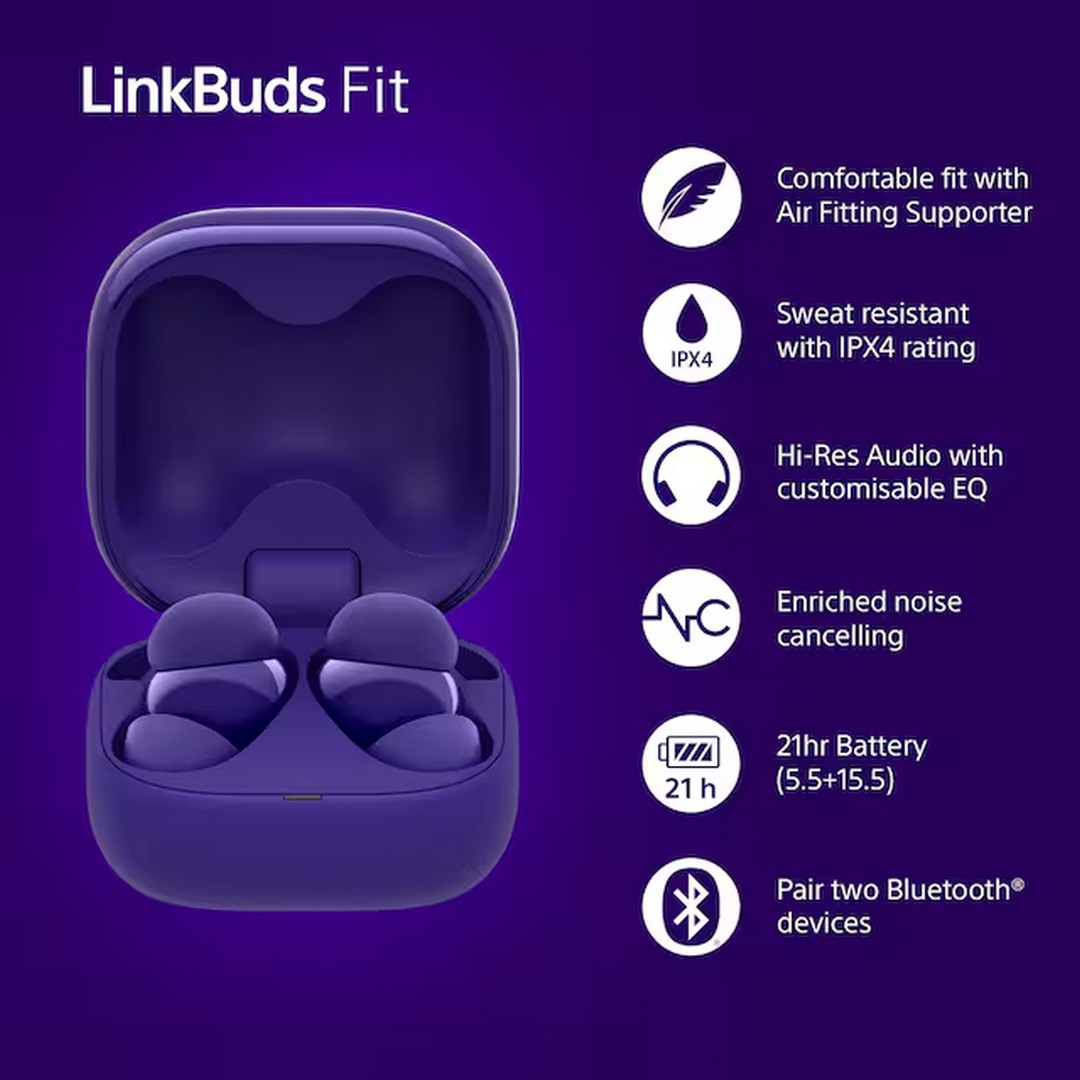 LinkBuds Fit giver stabilitet og komfort. Den smarte air fitting supporter sørger for en sikker pasform, og med lav vægt på kun 4,8 g pr. øretelefon kan de bruges længe uden ubehag. Med IPX4-klassificering tåler de både sved og regn, hvilket gør dem ideelle til både indendørs og udendørs aktiviteter.