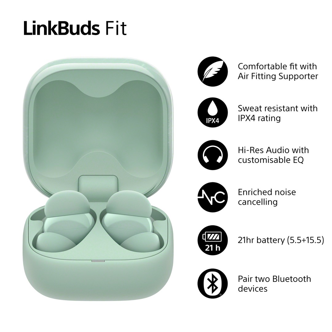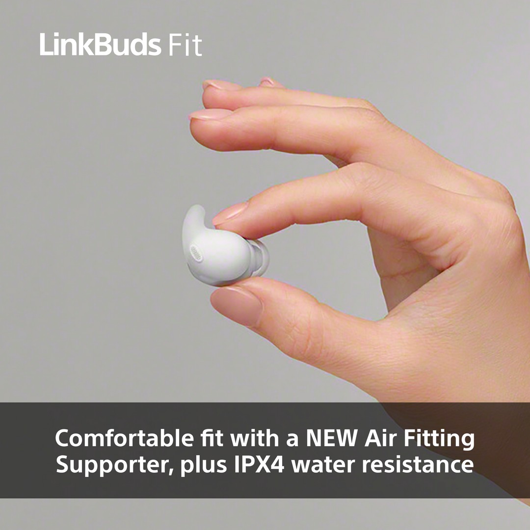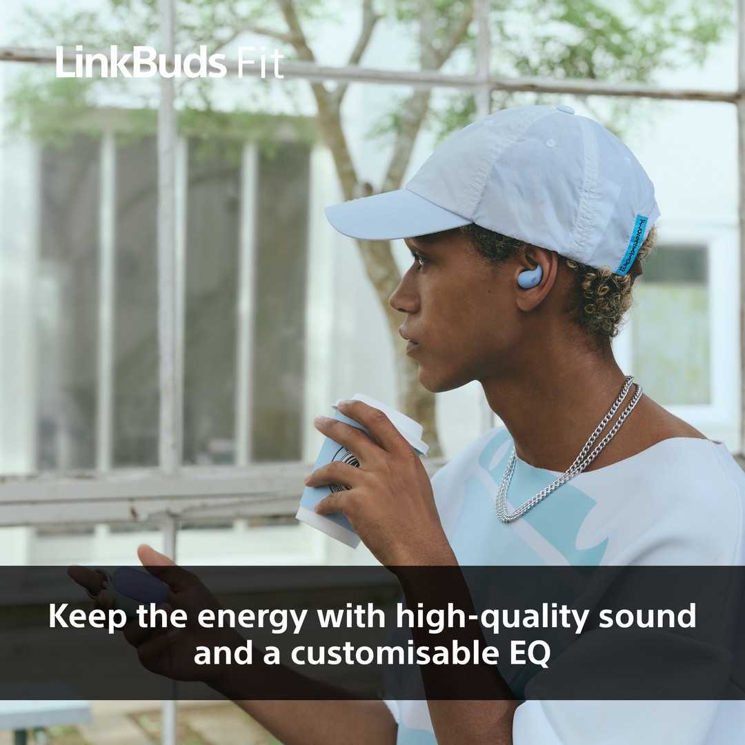 Vi introducerer LinkBuds Fit: Disse øretelefoner vejer kun 4,8 g og giver enestående komfort med en innovativ luftpude, der sikrer en stabil pasform. De er også vandtætte.