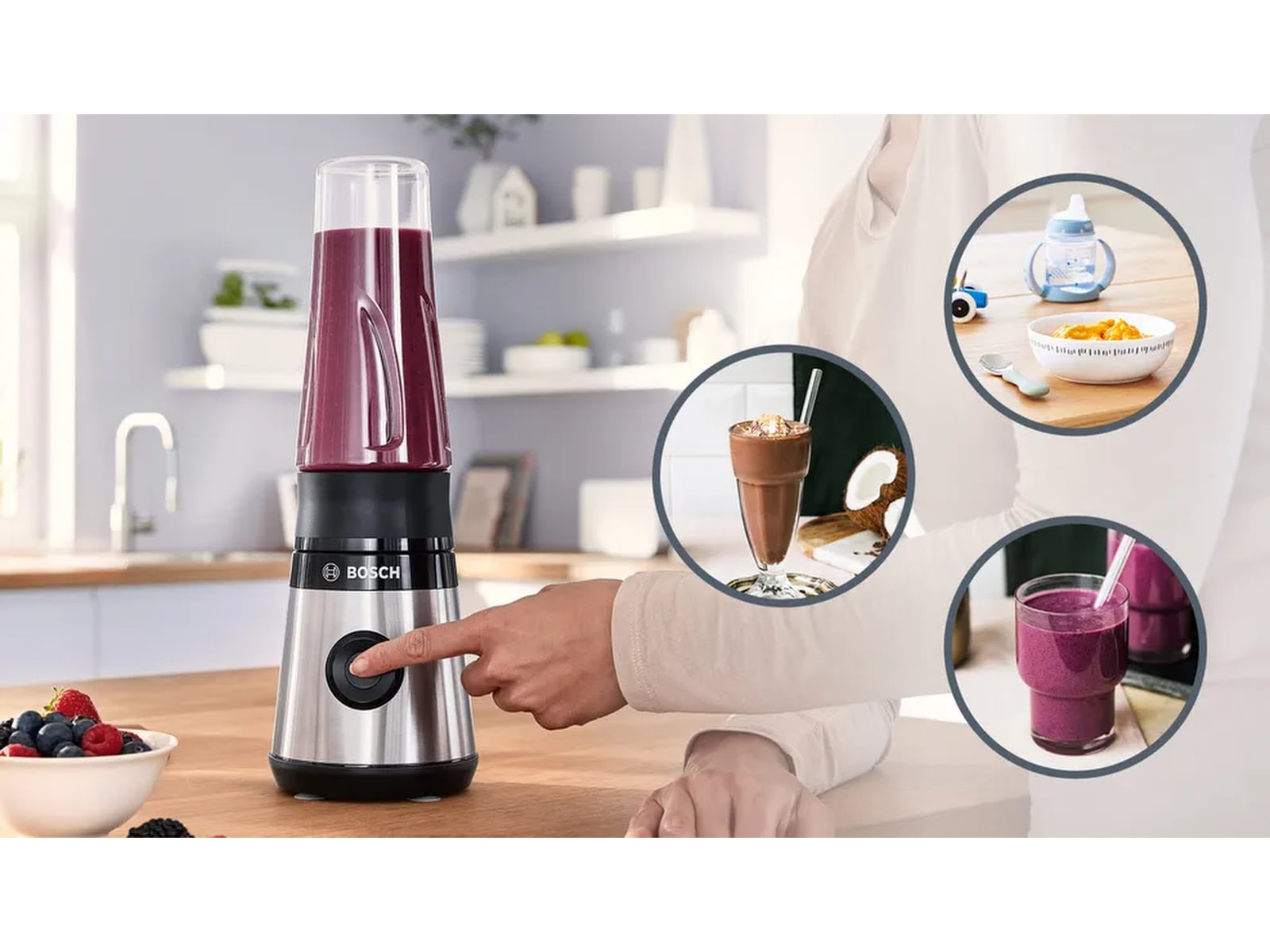 Nu kan du få de fineste resultater og en fantastisk shake eller smoothie, selv med en miniblender på 30 sekunder. Motoren på 450 watt med en hastighed på op til 40.000 o/min er baseret på Boschs ekspertise inden for køkkenmaskiner, som har været bevist siden 1955. Så du kan blande og slappe af uden at bekymre dig om overophedning af motoren.