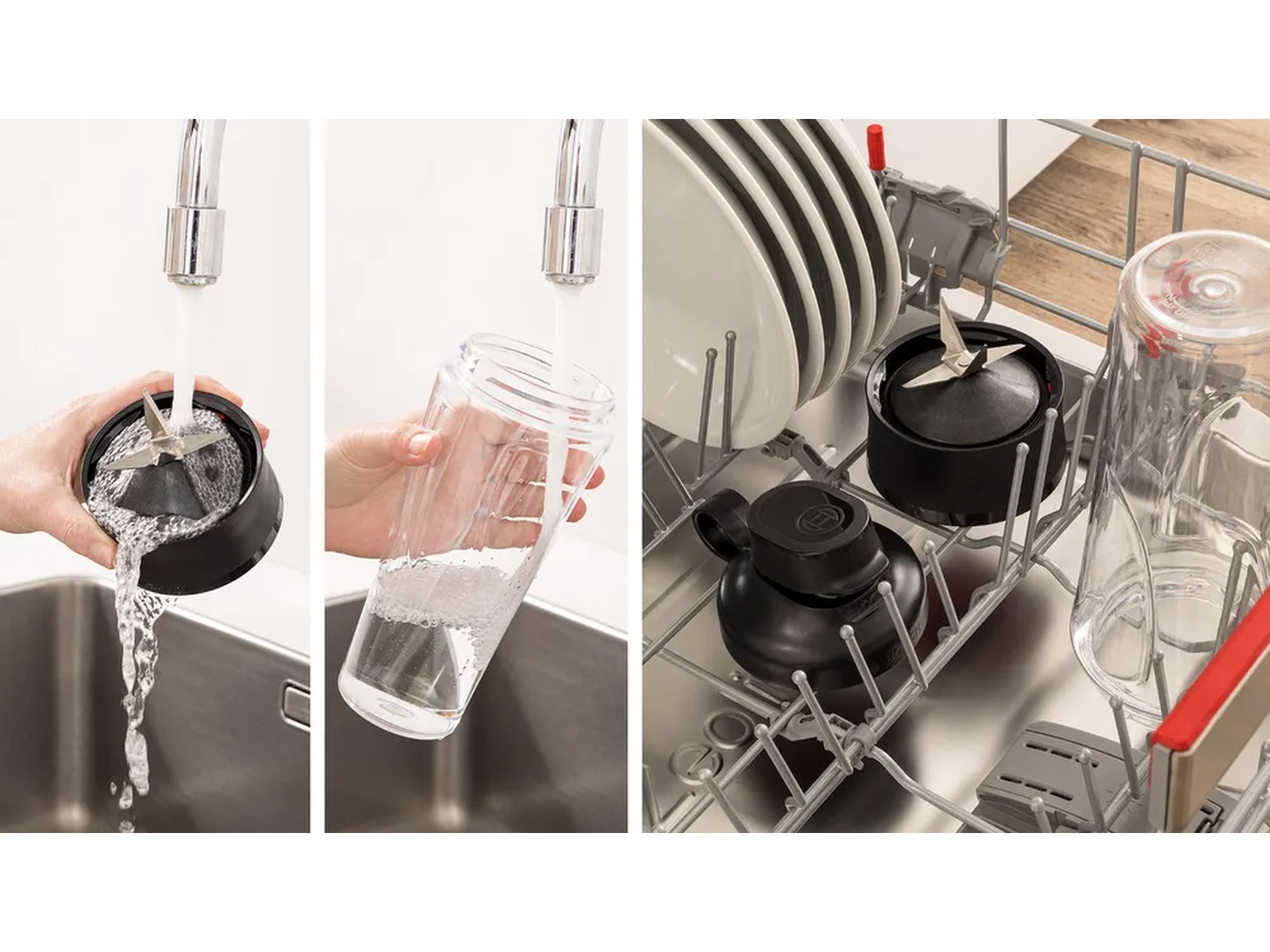 Komfort fra start til slut. Takket være en ToGo-flaske, der kan vendes ind, er monteringen så enkel som muligt og styres af en lydeffekt. Rengøringen er også nem og hurtig takket være dele, der tåler opvaskemaskine. Aftagelige klinger sikrer endnu mere komfort.