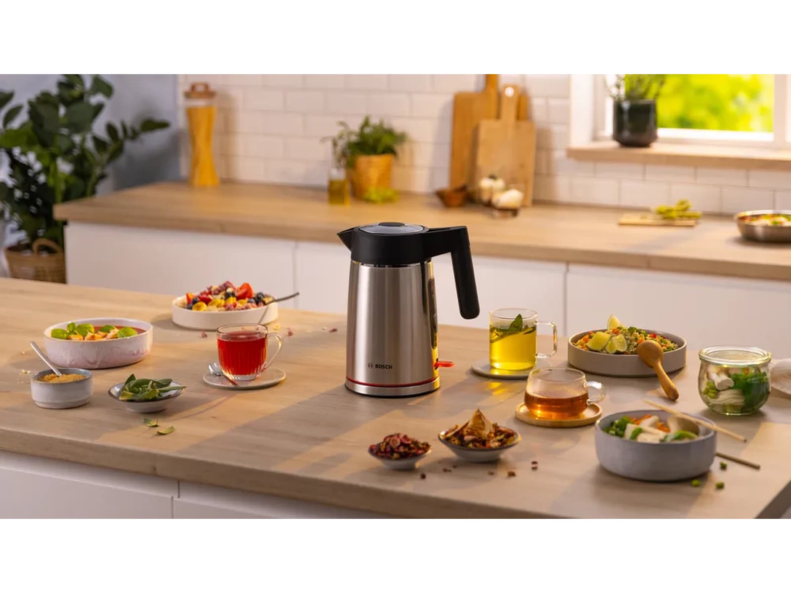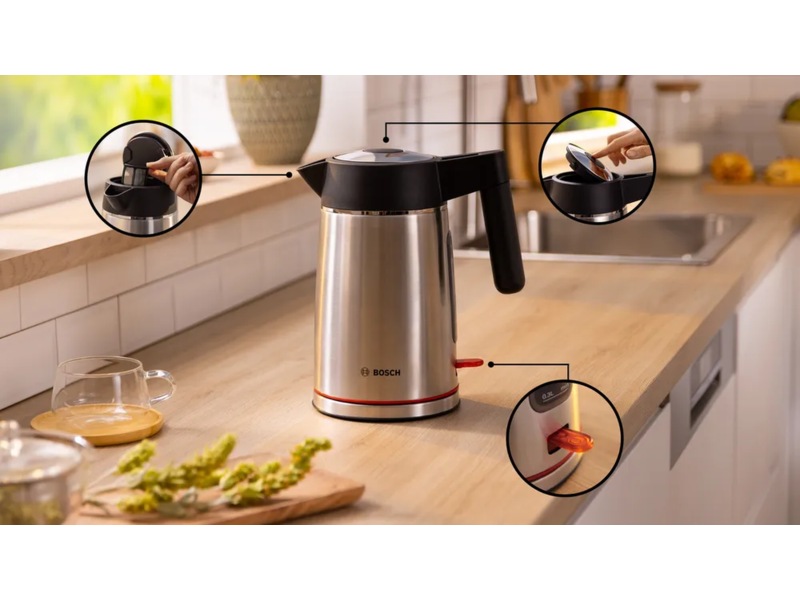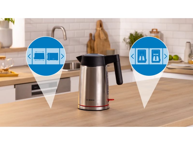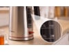 Denne elkedel er udstyret med tre sikkerhedsfunktioner, så du ikke skal spekulere på, om du har slukket den eller ej. Kedlen slukker automatisk, så snart vandet begynder at koge, eller når den indstillede temperatur er nået. Den slukker også automatisk, hvis den tændes uden vand, eller så snart den løftes af bundpladen.