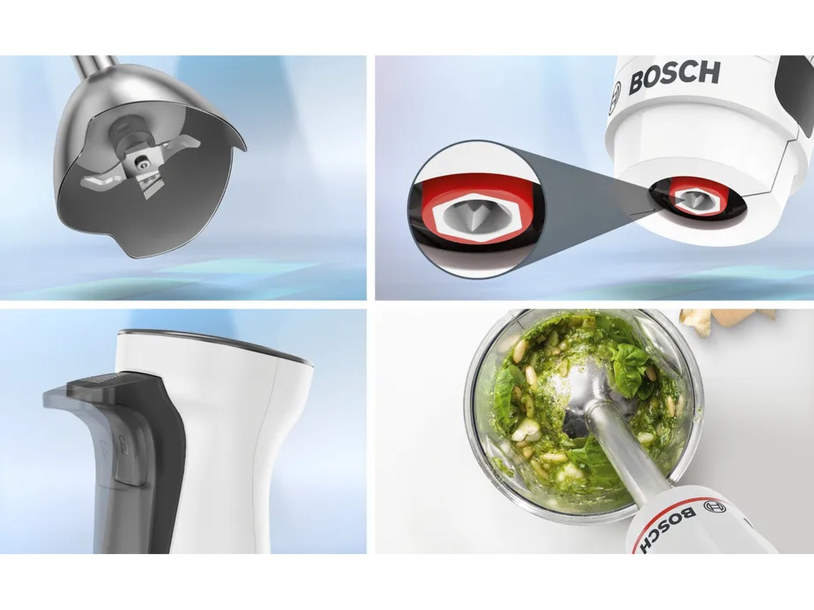 Opnå det perfekte resultat uden anstrengelse. Takket være dens højtydende motor giver ErgoMaster dig mulighed for nemt at håndtere enhver blanding, hakning og makulering. Uanset om du vil blande velsmagende supper eller dips, hakke nødder eller rive grøntsager, kan selv de hårdeste ingredienser tilberedes uden problemer på kort tid.