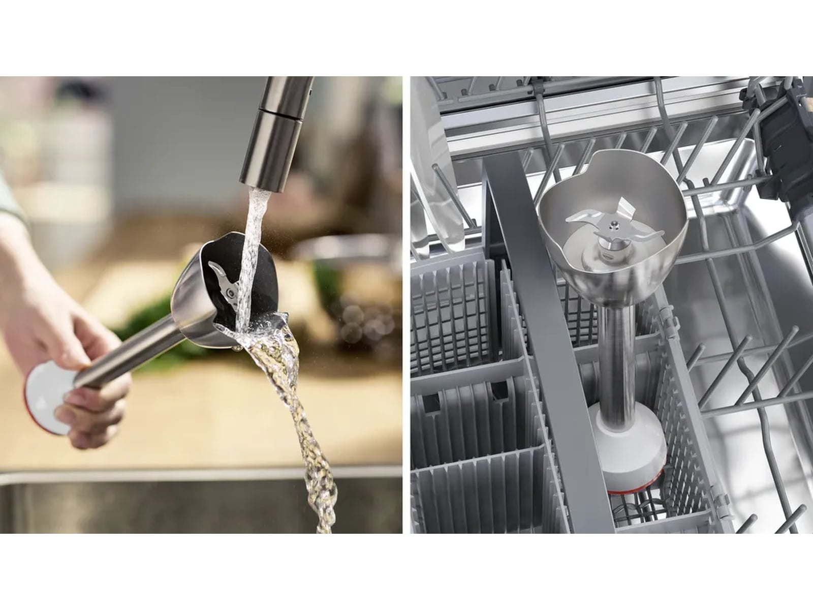 Rengøring er let og hurtig. Ved hjælp af et snaplås kan mikserfoden let fjernes fra motordelen for rengøring under rindende vand eller i opvaskemaskinen.