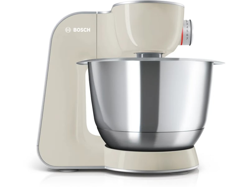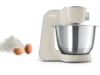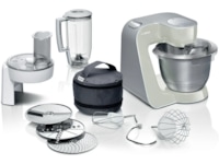 Den kraftfulde køkkenmaskine i mineralgrå/sølv til alsidig madlavning og bagning.
