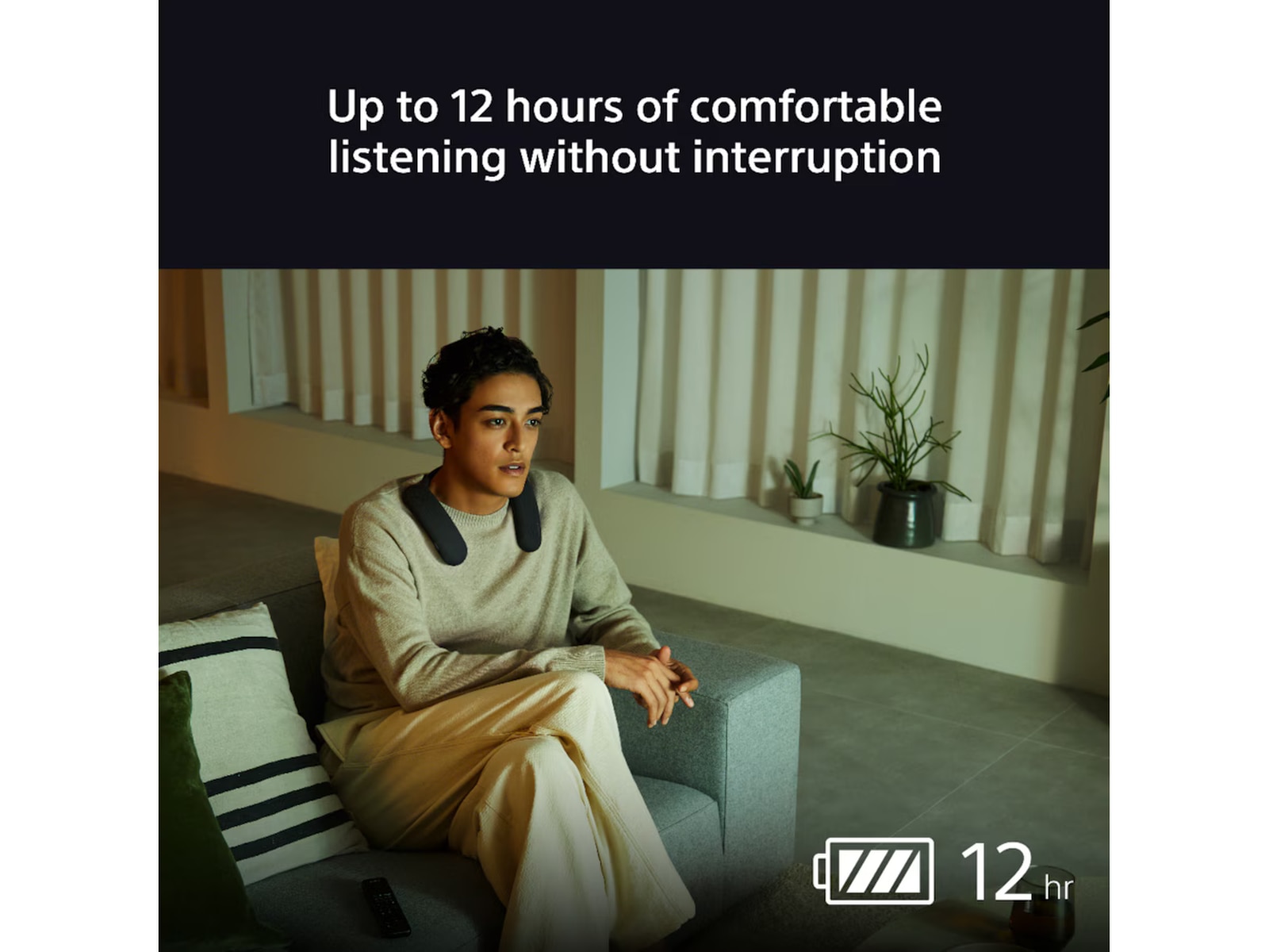 Utrolig komfortabel. Højttaleren er designet til at hvile blidt på din hals og følge dig gennem dagen - fra sofa til hjemmekontor. Den er 15% lettere end sin forgænger med strømlinet design og 12-timers batteri.