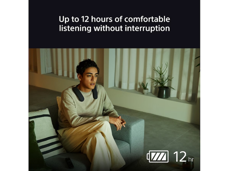 Utrolig komfortabel. Højttaleren er designet til at hvile blidt på din hals og følge dig gennem dagen - fra sofa til hjemmekontor. Den er 15% lettere end sin forgænger med strømlinet design og 12-timers batteri.