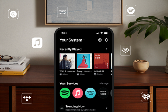 Håndter nemt alle dine indstillinger og musikstreamingtjenester på ét sted.