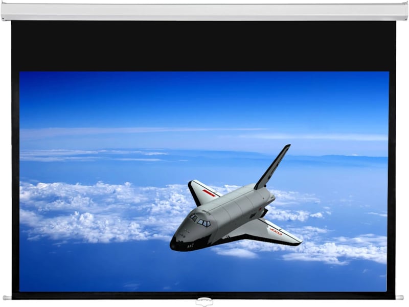 Lærredet kan monteres enten i loftet eller på væggen, alt efter dine behov. Bemærk venligst, at skruer til ophæng ikke medfølger.