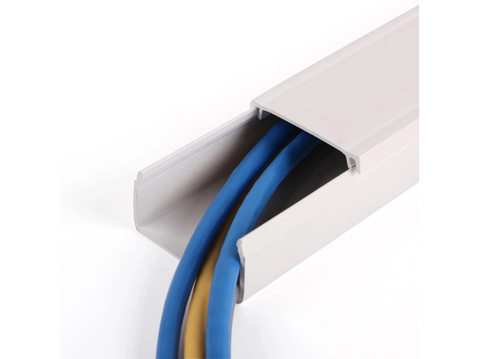 Kabelkanal, der giver en ryddelig og ledningsfri hverdag ved at skjule dine kabler på en effektiv måde. Med en størrelse på 15 x 10 mm kan den rumme flere kabler på samme tid, samtidig med at den fylder minimalt. Den hvide farve gør, at kabelkanalen passer diskret ved siden af fodpaneler eller langs væggen. Med en længde på to meter er den nem at placere, hvor du har brug for den, og kan tilpasses ved at skære den til i den ønskede længde.