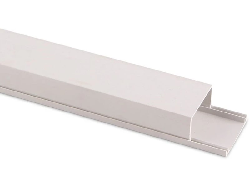 Den praktiske, aftagelige overdel gør det nemt at indsætte kabler bag TV'et eller mellem højttalere og stereoanlæg. Kabelkanalen er udstyret med forborede huller for nem vægmontering, og kan også fastgøres med lim, hvis det ønskes. Den hvide overflade kan males, så du kan tilpasse farven til resten af interiøret i dit hjem.