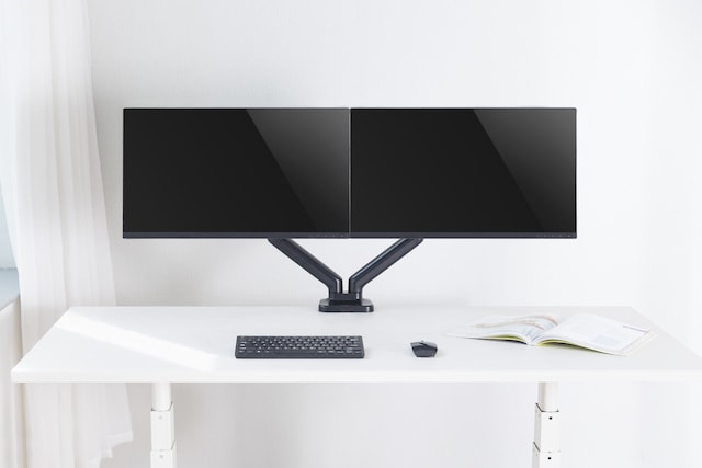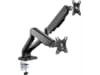 Beslaget passer til skærme fra 17" og op til 32" med en maksimal vægt på 9 kg pr. arm. Skærmen skal have en VESA-standard på 75 x 75 eller 100 x 100 for at passe til monteringen.