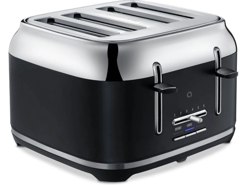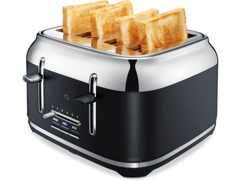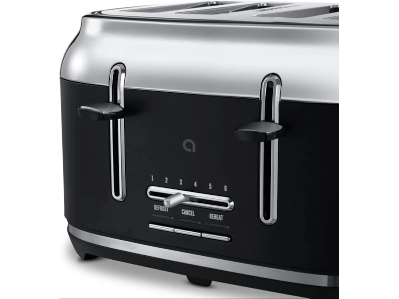 Brødristeren er desuden udstyret med en optøningsfunktion, der giver dig mulighed for at riste frossent brød direkte fra fryseren. Opvarmningsfunktionen er ideel til genopvarmning af toast, der er kølet ned. Skal du stoppe rysten tidligt, kan du nemt bruge stopfunktionen. Den praktiske anti-fastklæbende funktion forhindrer brændte skiver og gør rengøringen lettere.