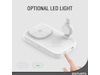 Denne magnetiske ladestation er den ideelle løsning til alle, der værdsætter design og funktionalitet. Med sit elegante og slanke udseende passer den perfekt ind i ethvert kontor eller soveværelse og fungerer som en visuel øjenfanger. Fremstillet af materialer af høj kvalitet, imponerer den ikke kun med sit udseende, men også med sin holdbarhed. Uanset om den står på skrivebordet eller natbordet, glider den harmonisk ind i ethvert miljø. Især bemærkelsesværdig er dens stille drift, som ikke forstyrrer arbejde eller søvn. Det integrerede betjeningslys (LED) kan også slukkes for at sikre en behagelig mørke om natten.