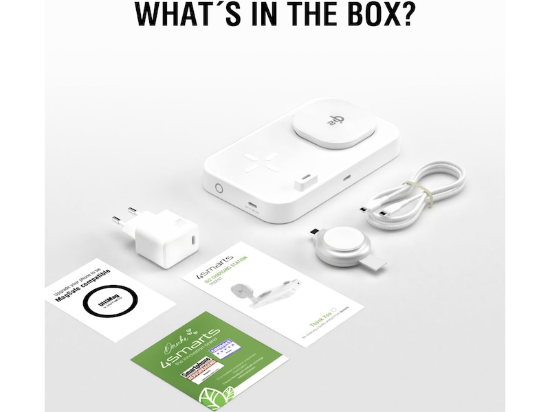 Velkommen til vores nye Qi2 oplader til trådløs opladning! Den tilbyder mere kraft og effektivitet takket være Qi2-standarden. MagSafe-teknologi med stærke magneter holder din mobiltelefon sikkert og positionerer den præcist til hurtig opladning. Den medfølgende UltiMag-ring gør også mobiltelefoner uden MagSafe/Qi2 anvendelige. Vores station er kompatibel med de nyeste iPhone-modeller. For andre mobiltelefoner, tjek kompatibilitet på producentens hjemmeside.