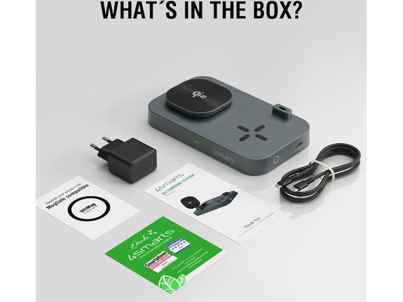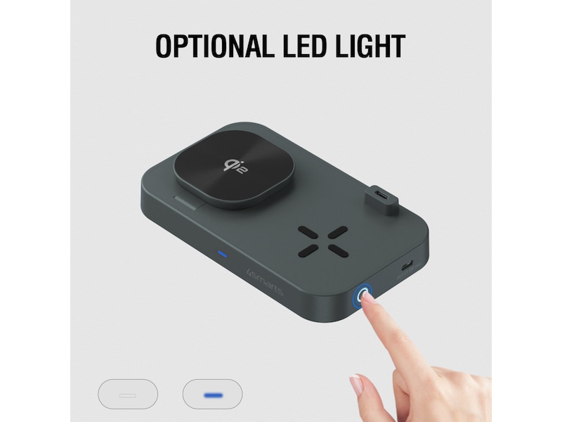 - Qi2 standard: Effektiv opladning af kompatible smartphones, suppleret med vores magnetiske ring til enheder uden denne teknologi
