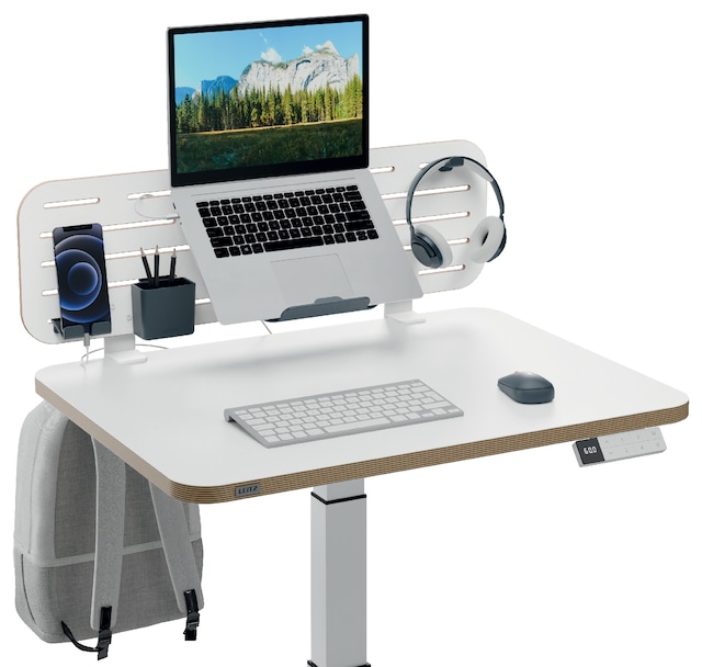 - Det er en værdifuld tilføjelse til Leitz Ergo hæve/sænke bord (65340001 eller 65360001), mindre pegboard fås også (65480000)