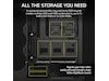 To kombinerede drevbakker og tre SSD-beslag muliggør flere SSD- og HDD-kombinationer, op til 7x i alt 2,5" SSD'er eller 3x 3,5" HDD'er.