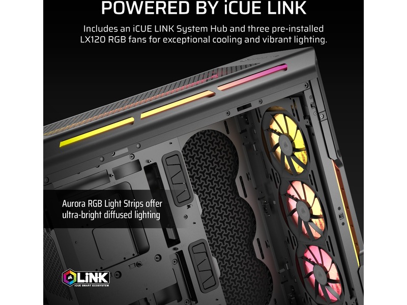 - 3x LX120 RGB-blæsere og iCUE LINK System Hub inkluderet