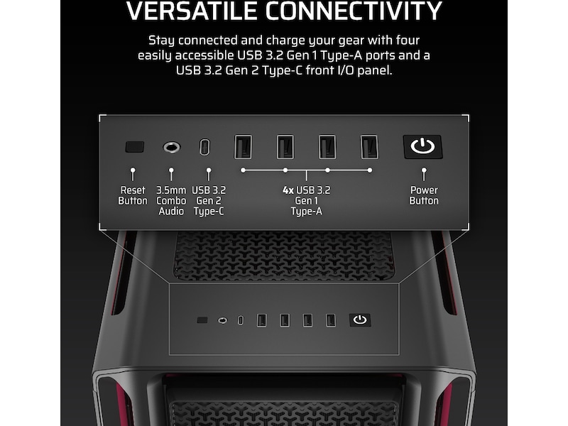 En række CORSAIR-innovationer forbedrer byggeoplevelsen, inklusive lodret monteringsstøtte uden ekstra beslag, quikturn-skruer med ét vrid, fleksible dobbeltskudsgennemføringer og udvendige udskæringer til kabel ledelse.