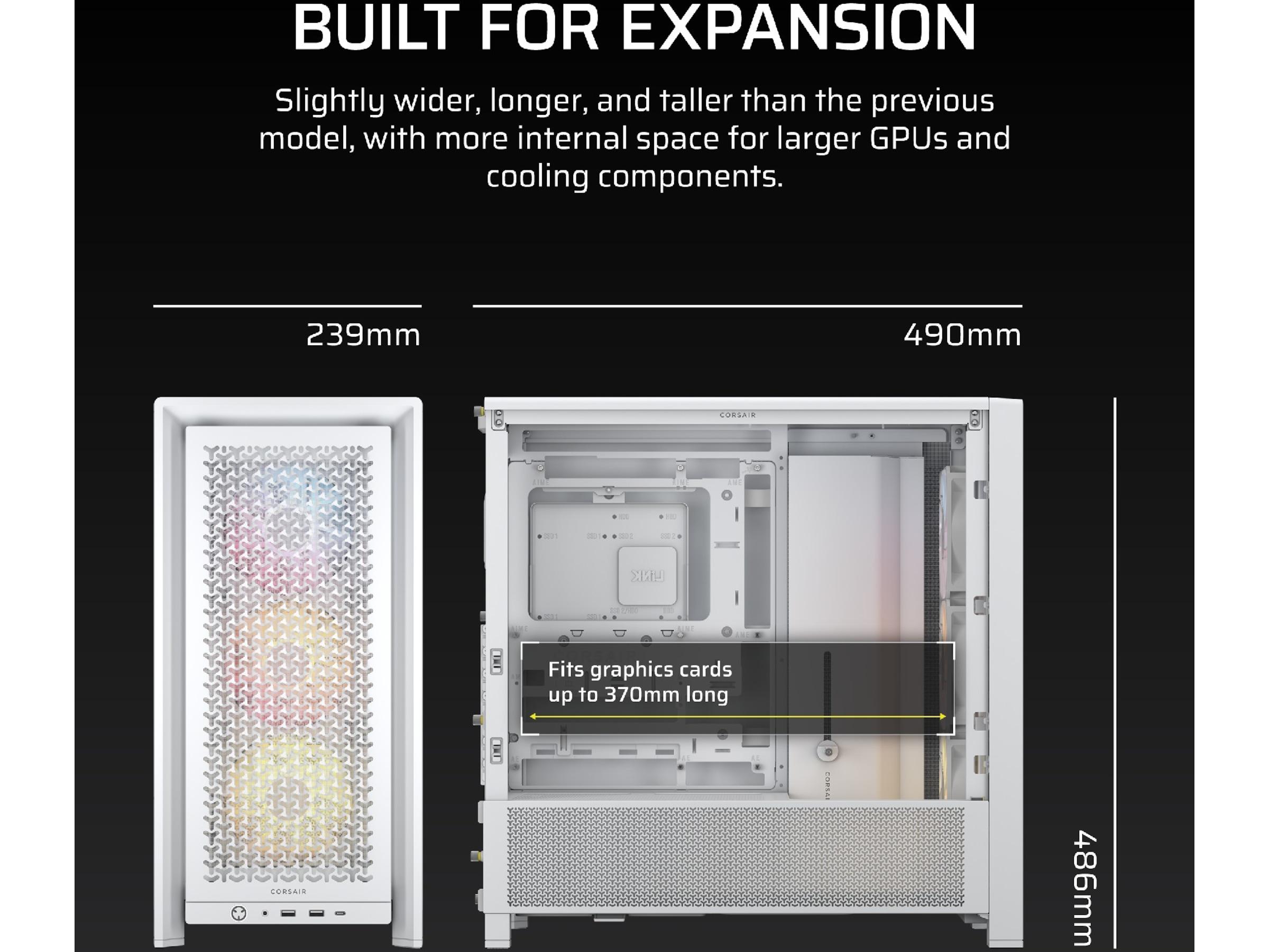 FRAME 4000D er kun en lille smule bredere, længere og højere end den tidligere 4000D for at give plads til mere kraftfulde GPU'er og kølekomponenter, men ikke så stor, at den tærer på din skrivebordsplads.