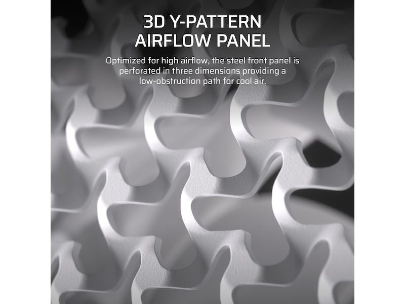 Optimeret til høj luftstrøm og minimal begrænsning, stålfrontpanelet er perforeret i tre dimensioner med et Y-mønster, der giver en lav-obstruktionsvej til kølig luft.