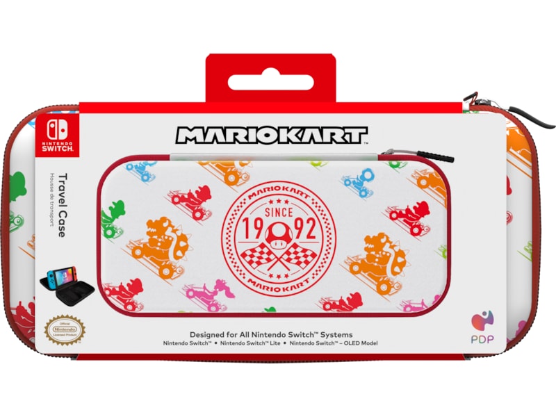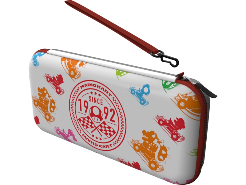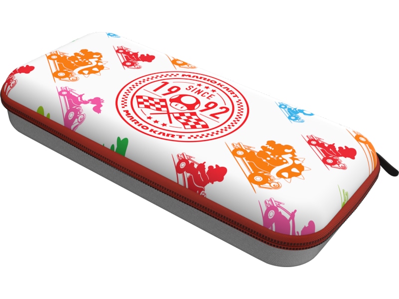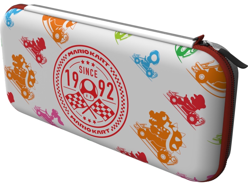 Opbevar og beskyt din Nintendo Switch™, Nintendo Switch™ Lite eller Nintendo Switch™ - OLED-model i det stilfulde Mario Kart Racers rejsetaske! Med et integreret stativ kan du støtte din enhed og spille komfortabelt på farten i timevis.
