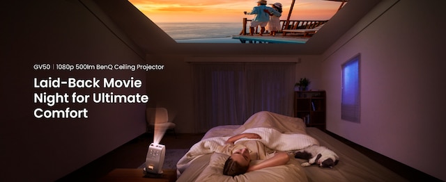 Oplev den ultimative komfort med GV50. Perfekt til afslappede filmaftener, dets fleksible basedesign giver mulighed for problemfri loftprojektion lige fra din seng. Nyd ubesværet kvadratiske billeder med autofokus, 2D keystone-korrektion. Med indbygget Google TV, Netflix og support til AirPlay og Chromecast er det din opgraderede underholdningshub. Plus, levende billeder er garanteret med dens laserlyskilde, der leverer 500 ANSI Lumen og 98 % Rec.709 bred farveskala. Og glem ikke den 2.1-kanals rige lydoplevelse takket være dets 270-graders 18W Bluetooth-højttalersystem.